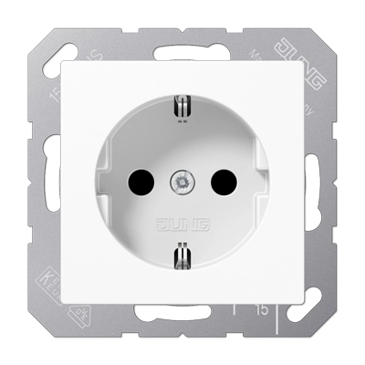 JUNG stopcontact met randaarde, A-range, alpine wit. Bedrading aansluiten met insteekklemmen, de draagring is aangesloten op de aardverbinding. Thermoplast (hoogglans). Excl. afdekraam.Meer informatie »