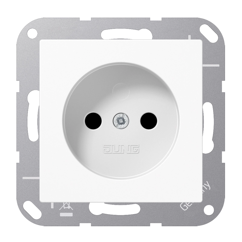 JUNG stopcontact zonder randaarde, A-range, alpine wit. Bedrading aansluiten met insteekklemmen. Duroplast, zeer krasvast en glanzend. Excl. afdekraam.Meer informatie »