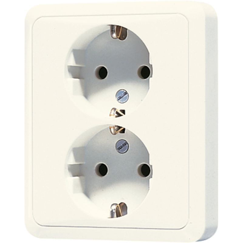 JUNG 'vlak' stopcontact 2-voudig zonder randaarde met verhoogde aanraakbeveiliging, incl. afdekraam en geschikt voor een enkele ronde inbouwdoos, CD 500, crème. Bedrading aansluiten met insteekklemmen. Duroplast, zeer krasvast en glanzend.Meer informatie »