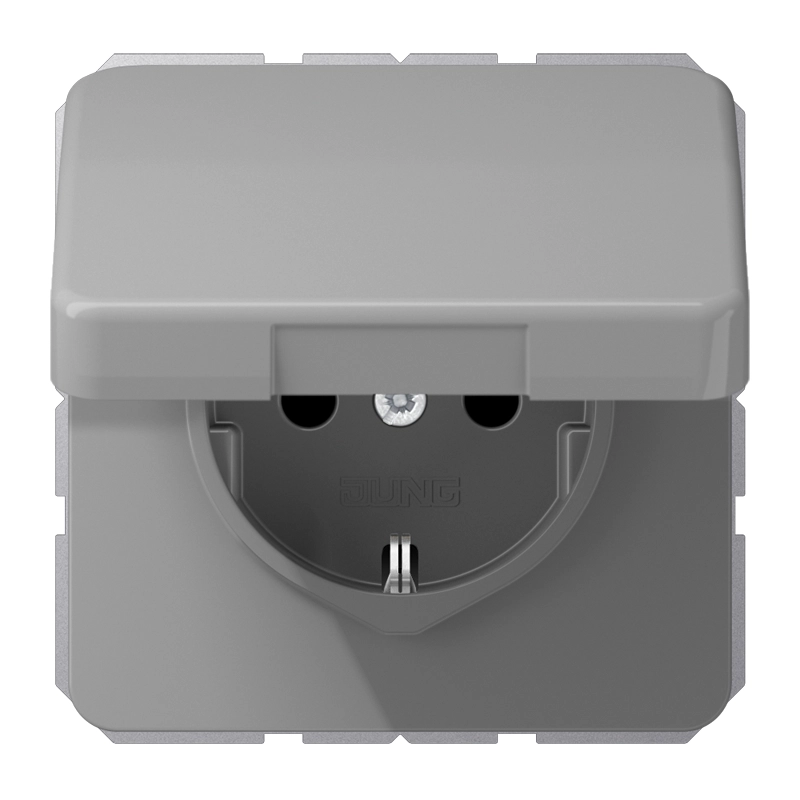 JUNG stopcontact met randaarde en klapdeksel, CD 500, grijs. Bedrading aansluiten met insteekklemmen, de draagring is aangesloten op de aardverbinding. Thermoplast (hoogglans). Excl. afdekraam.Meer informatie »