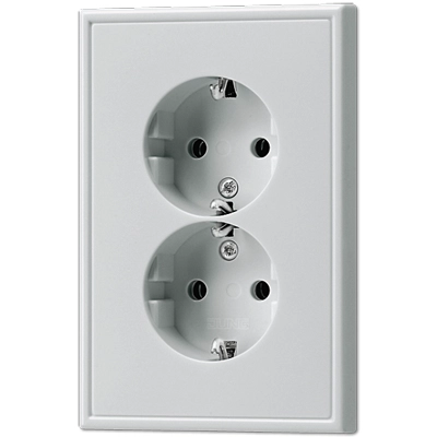 JUNG stopcontact 2-voudig met randaarde en verhoogde aanraakbeveiliging. Geschikt voor een enkele (ronde) inbouwdoos, LS 990, aluminium. Bedrading aansluiten met insteekklemmen. Duroplast gelakt.Meer informatie »