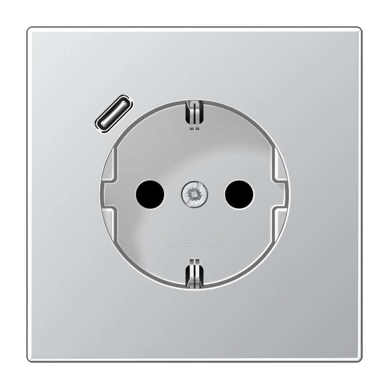 JUNG stopcontact met randaarde, verhoogde aanraakbeveiliging en één USB-C poort. LS 990, aluminium (metaaluitvoering). Geschikt voor inbouwdozen met een minimale diepte van 57 mm. Excl. afdekraam.Meer informatie »