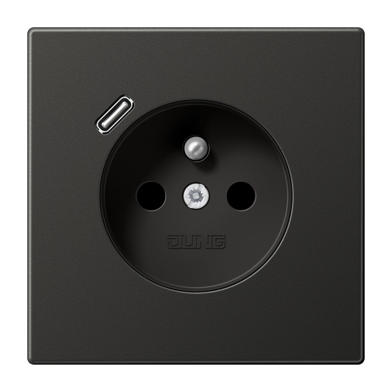 JUNG AL 1520-18 C AN wandcontactdoos randaarde Safety+ met USB-C LS990 antraciet gelakt aluminium