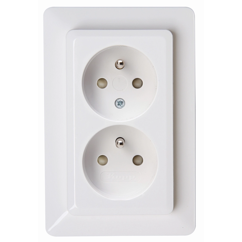 Kopp dubbel stopcontact zonder randaarde met kinderbeveiliging, HK02, kleur: arctic wit. Geschikt voor een enkele (ronde) inbouwdoos.Meer informatie »