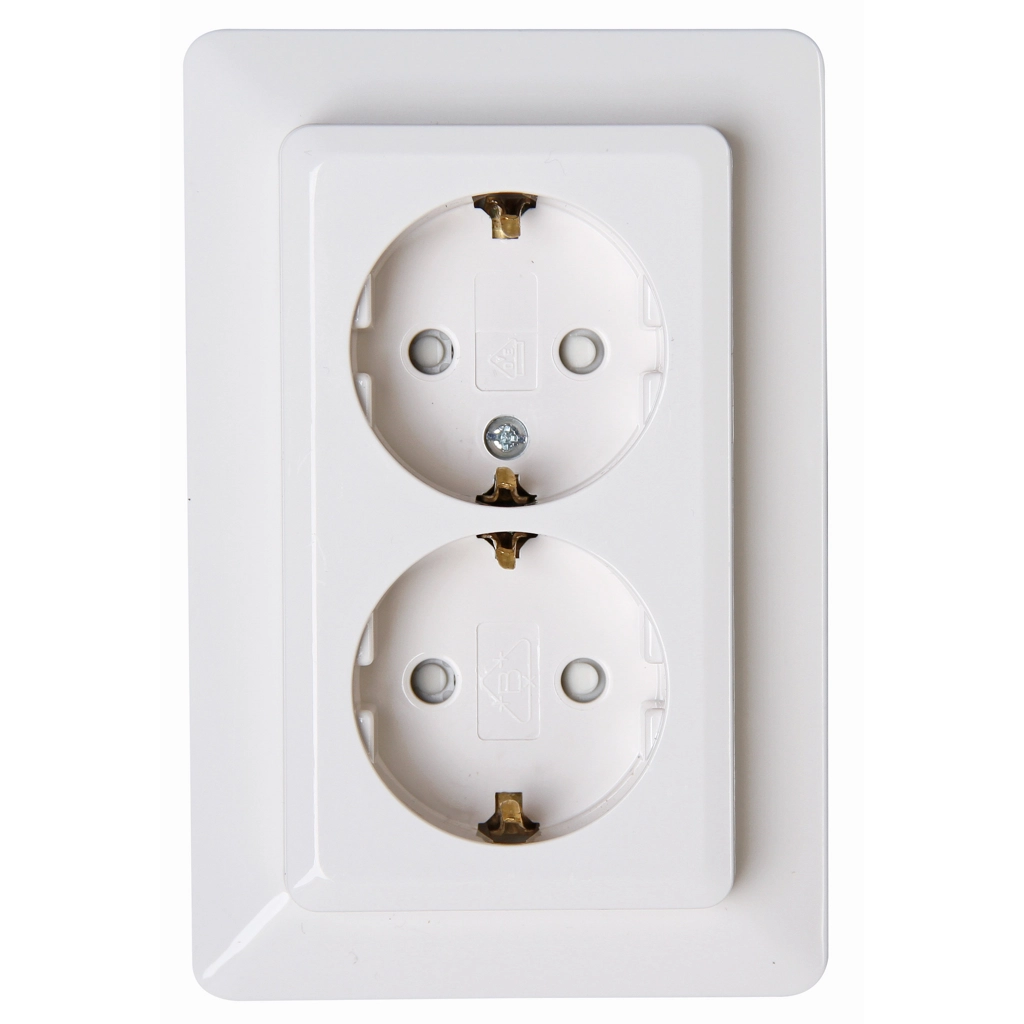Kopp dubbele wandcontactdoos met randaarde en kinderbeveiliging, HK02, kleur: arctic wit. Geschikt voor een enkele (ronde) inbouwdoos.Meer informatie »