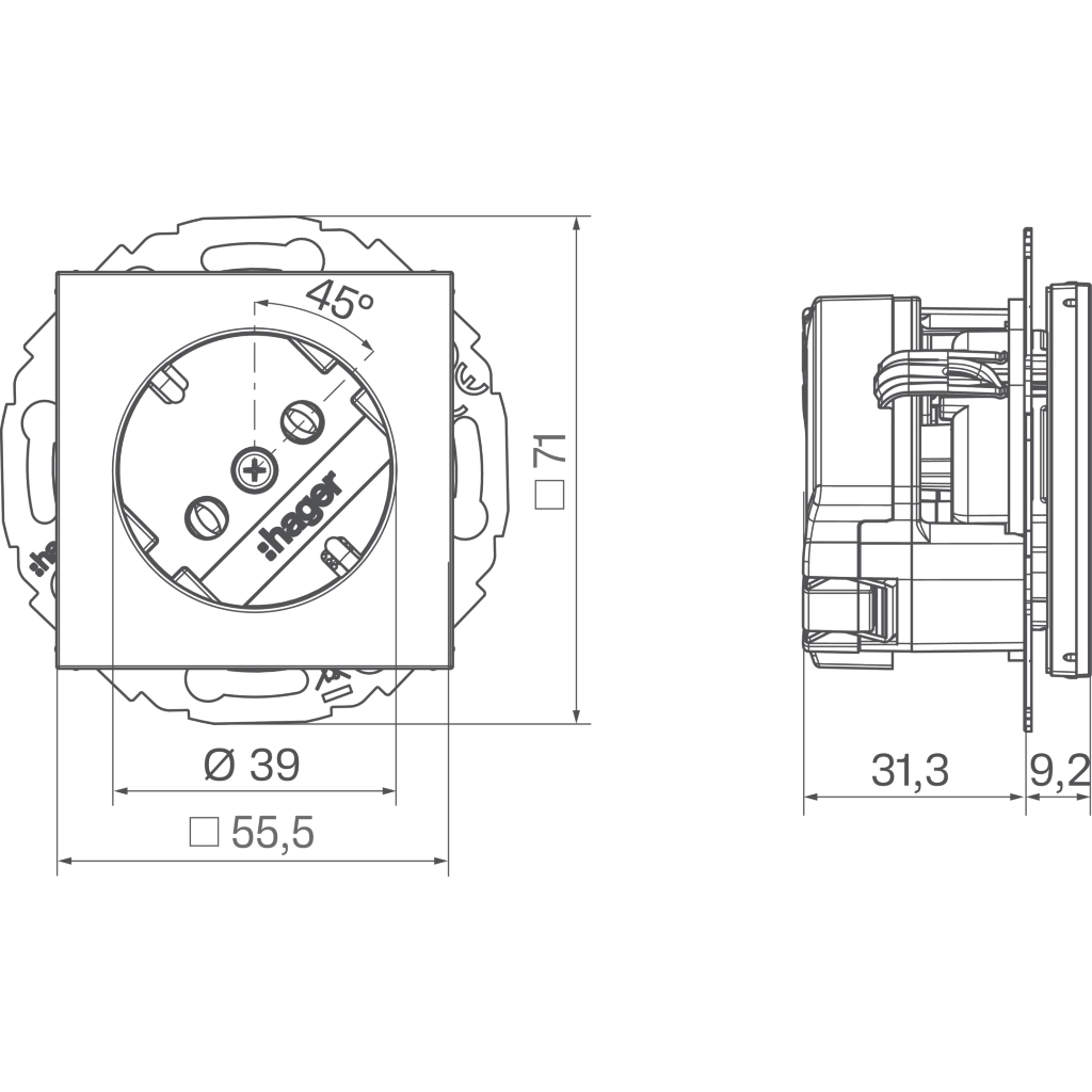 Hager Berker randaarde stopcontact met 45° gedraaide stekkerstand, A.1/A.8/C.1/C.8, antraciet mat. Met klauwbevestiging/spreidklemmen. Excl. afdekraam. Meer informatie »