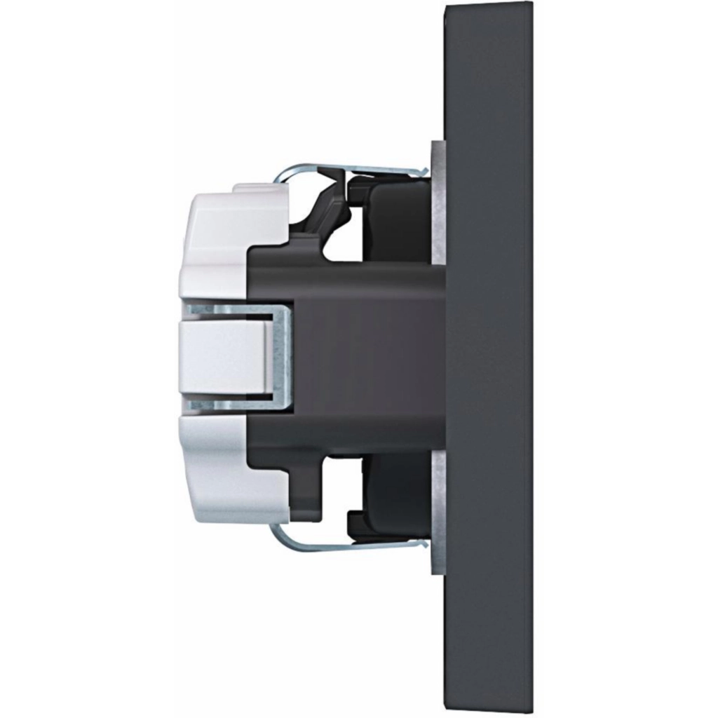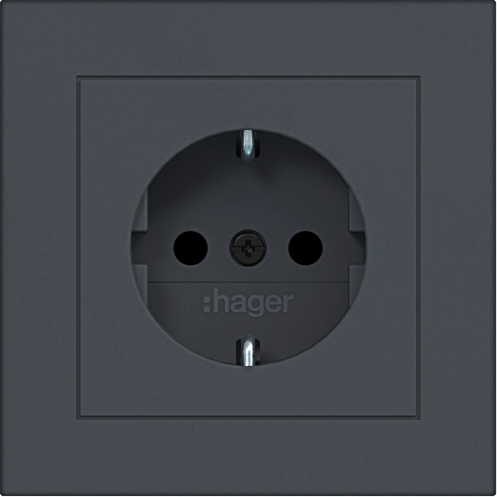 Hager Berker randaarde stopcontact met verhoogde aanraakbeveiliging en volle afdekplaat, voor afzonderlijke montage. Met klauwbevestiging/spreidklemmen. Incl. afdekraam A.1, antraciet mat.