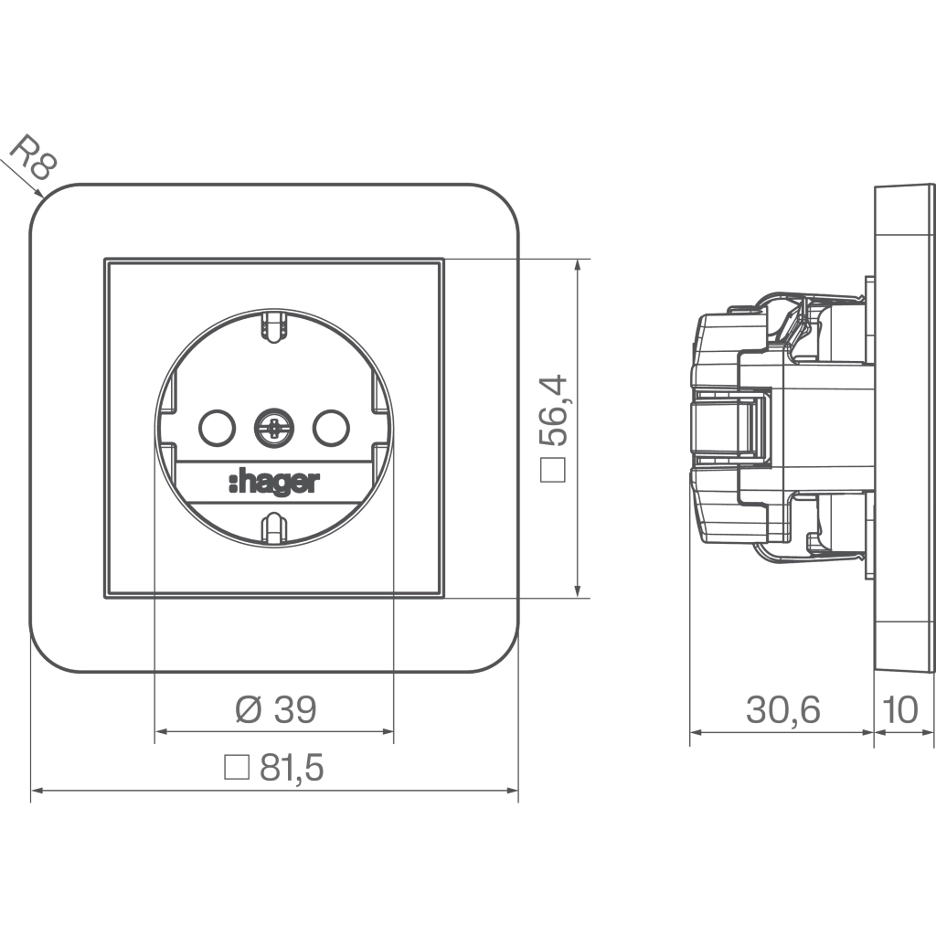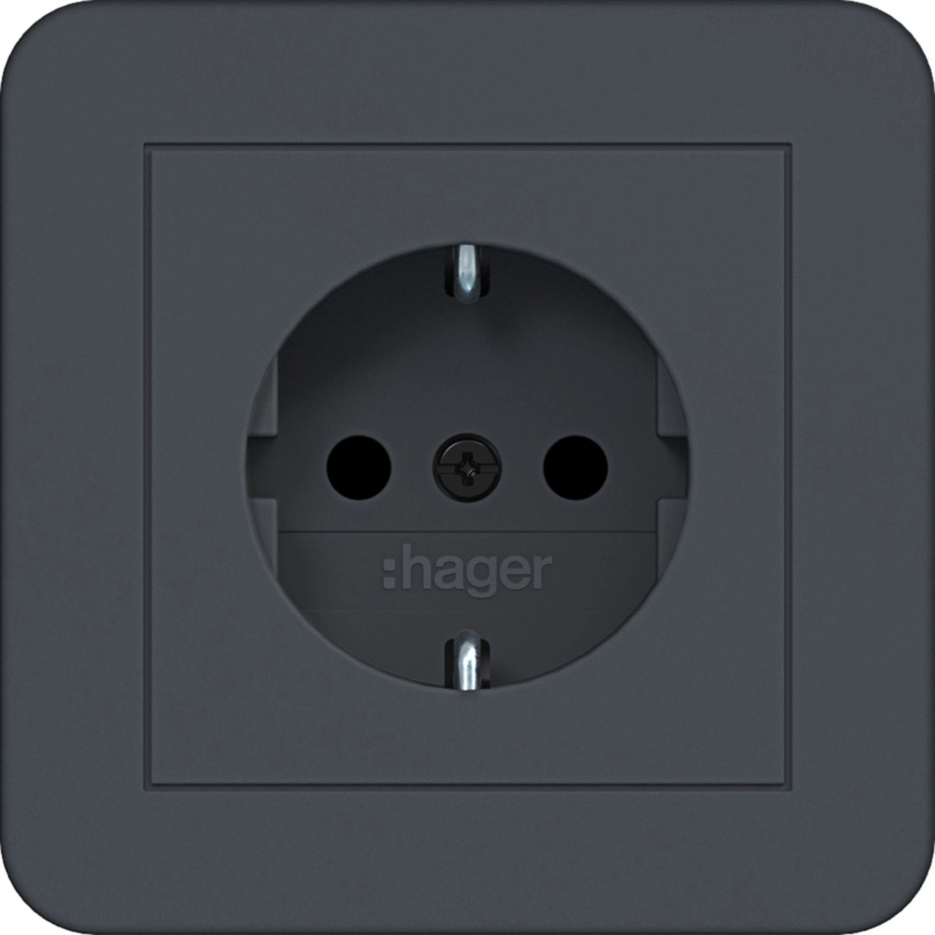 Hager Berker randaarde stopcontact met verhoogde aanraakbeveiliging en volle afdekplaat, voor afzonderlijke montage. Met klauwbevestiging/spreidklemmen. Incl. afdekraam C.1, antraciet mat.