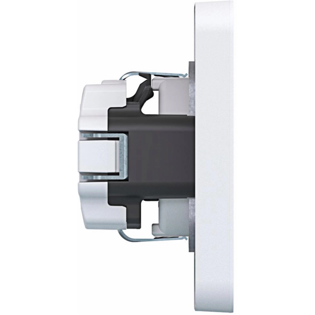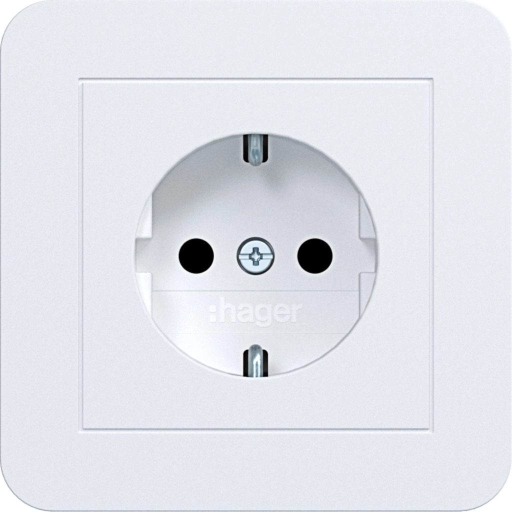 Hager Berker randaarde stopcontact met verhoogde aanraakbeveiliging en volle afdekplaat, voor afzonderlijke montage. Met klauwbevestiging/spreidklemmen. Incl. afdekraam C.1, lichtwit mat.