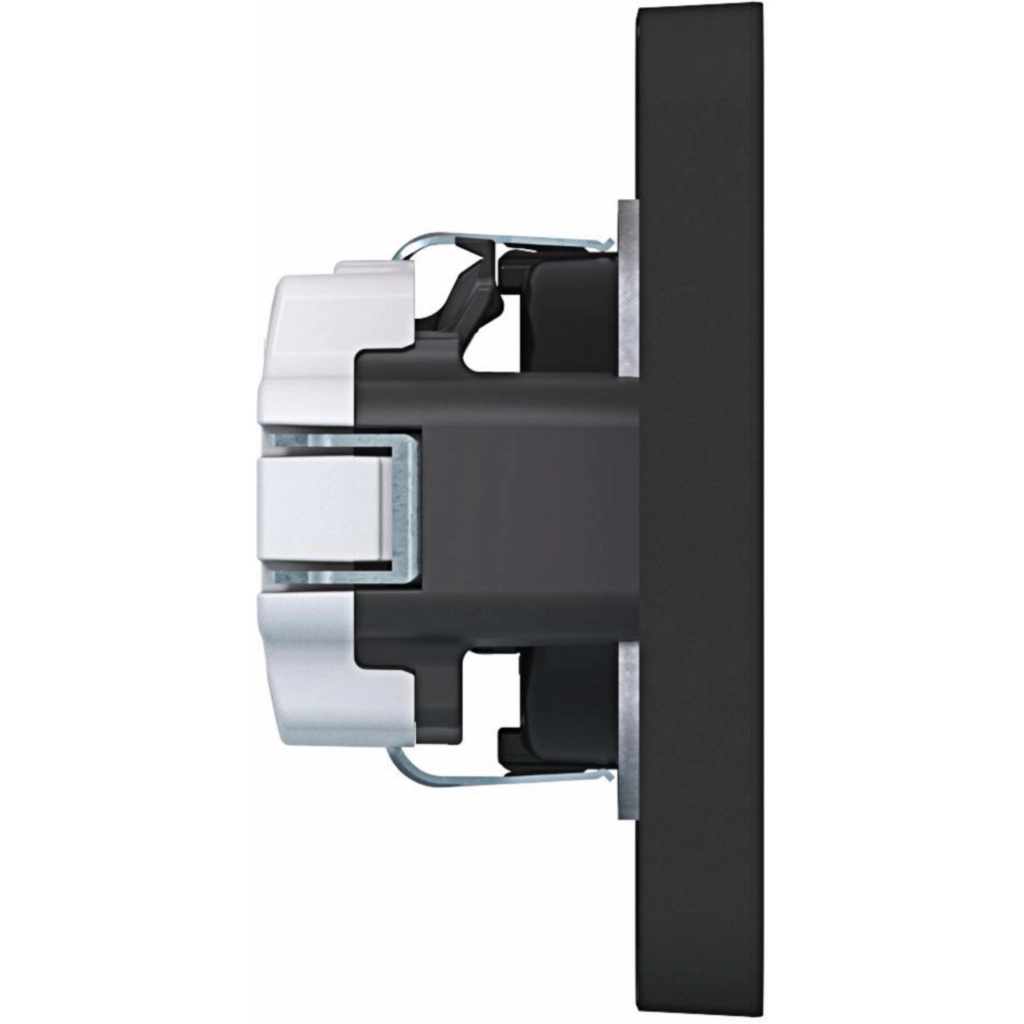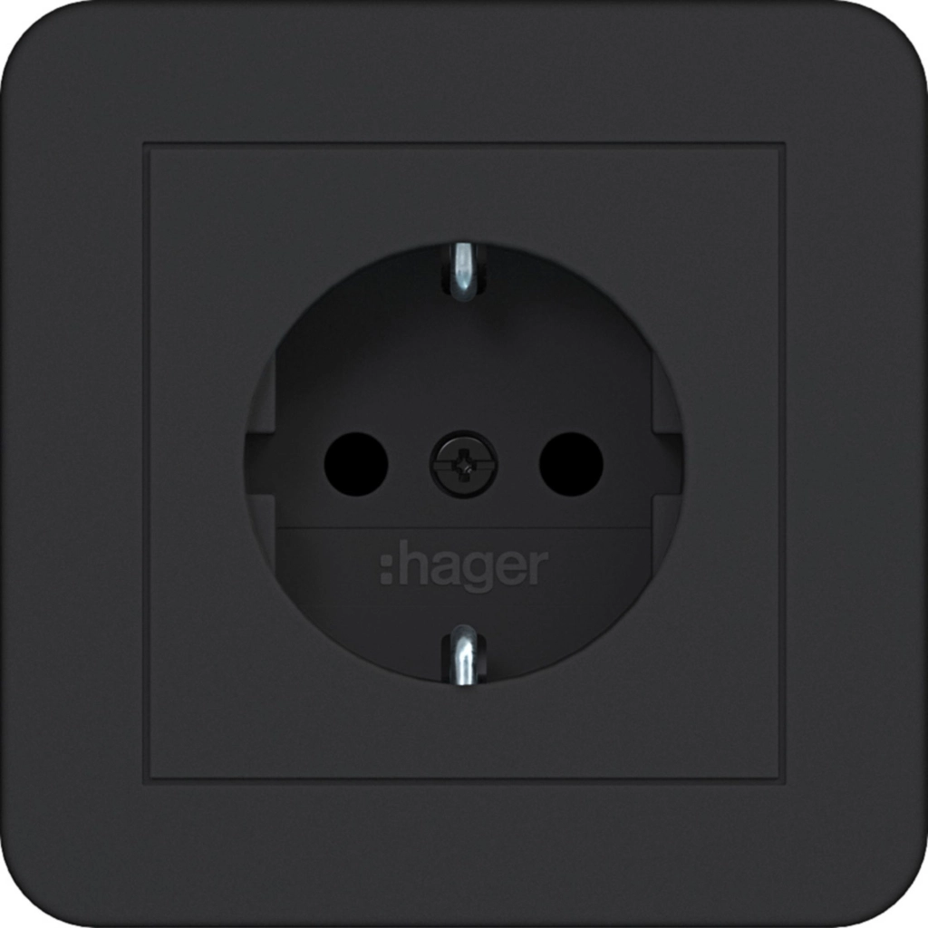 Hager Berker randaarde stopcontact met verhoogde aanraakbeveiliging en volle afdekplaat, voor afzonderlijke montage. Met klauwbevestiging/spreidklemmen. Incl. afdekraam C.1, nachtzwart mat.