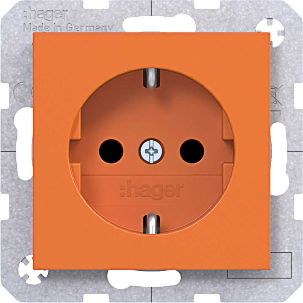 Hager Berker randaarde stopcontact met verhoogde aanraakbeveiliging, A.1/A.8/C.1/C.8, oranje mat. Met klauwbevestiging/spreidklemmen. Excl. afdekraam.