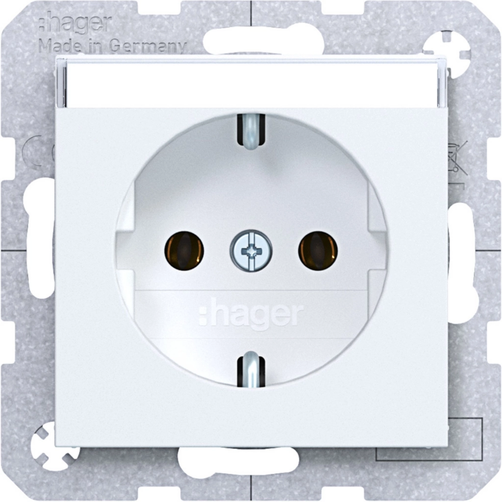 Hager Berker randaarde stopcontact met tekstveld, A.1/A.8/C.1/C.8, lichtwit mat. Met klauwbevestiging/spreidklemmen. Excl. afdekraam. Meer informatie »