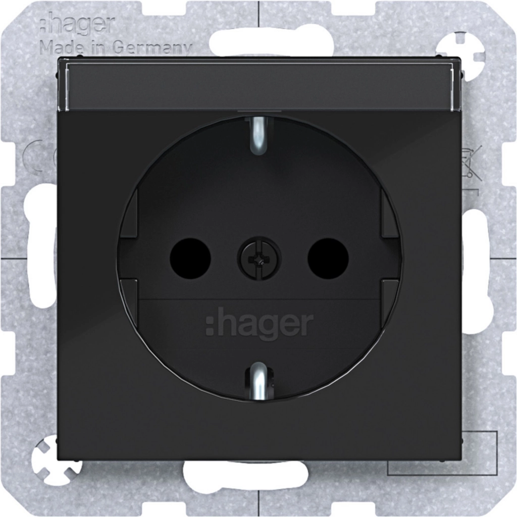 Hager Berker randaarde stopcontact met verhoogde aanraakbeveiliging en tekstveld, A.1/A.8/C.1/C.8, nachtzwart glans. Met klauwbevestiging/spreidklemmen. Excl. afdekraam. Meer informatie »