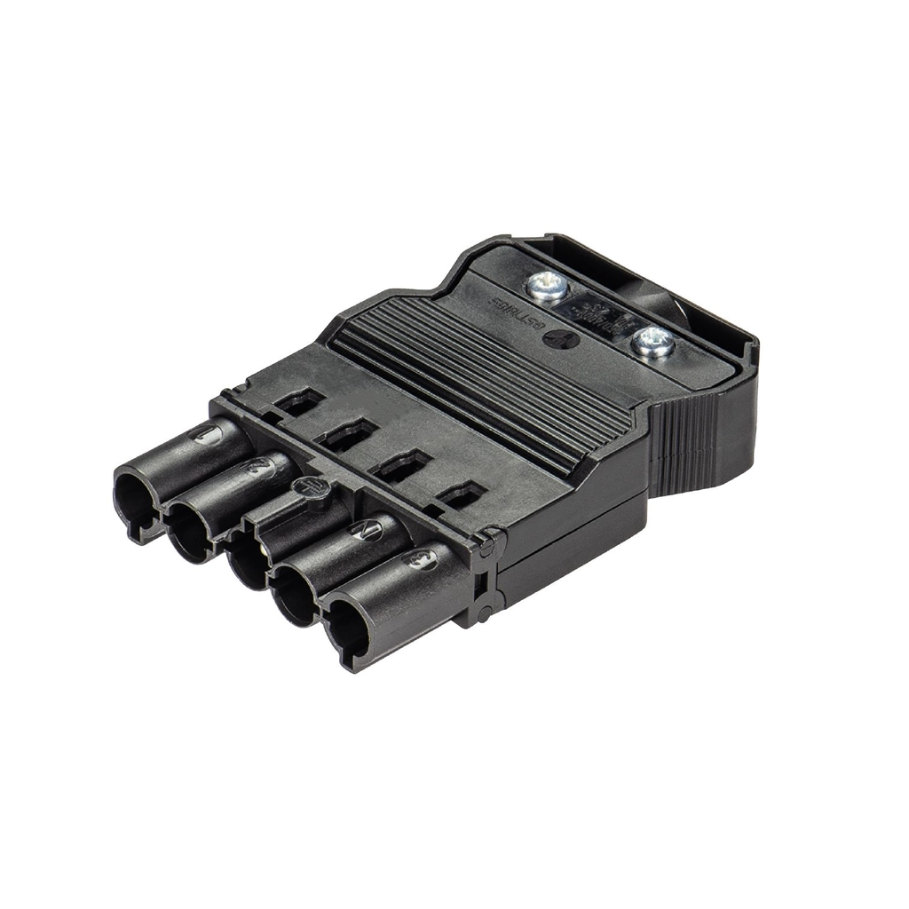 Stekker (Male) gebouwinstallatie, 5-polig, 1v klem, 250V, 20A, Aansluitwijze: Schroefaansluiting, Zwart, Halogeenvrij, Vergrendeling Geïntegreerd in plug-in connector, IP20, Max. temp. 100°C, Markering: 3, N, PE, 2, 1,... Meer informatie »