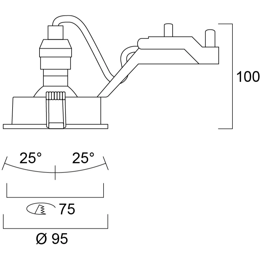 Sylvania Instar Trend 75 Swing inbouwspot met GX5.3 fitting, 25° kantelbaar. Materiaal behuizing: aluminium, kleur: geborsteld aluminium. Diameter front: 95 mm, inbouwdiepte: 100 mm, boorgat: 75 mm. IP44, uitsluitend geschikt voor binnengebruik. Wordt geleverd zonder lichtbron en driver.