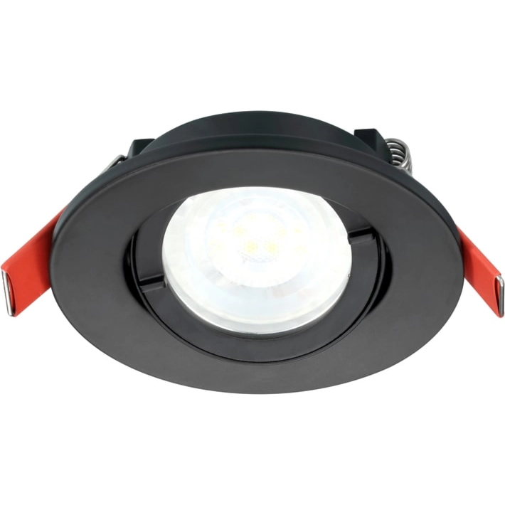 Sylvania Inset Trend 75 Swing inbouwspot met GU10 fitting, 25° kantelbaar. Materiaal behuizing: aluminium, kleur: zwart. Diameter front: 95 mm, inbouwdiepte: 100 mm, boorgat: 75 mm. IP44, uitsluitend geschikt voor binnengebruik. Wordt geleverd zonder lichtbron.