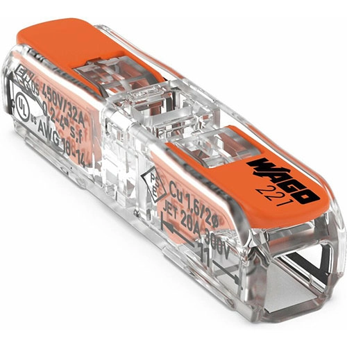 Wago doorvoerconnector/lasklem met hendel, 1-voudig, 32 A, 450 V, doos van 60 stuks. Compatibel met massieve, meeraderige en flexibele geleiders van 0,2 tot 4 mm². Gemakkelijk te bedienen: hendel openen, geleider plaatsen en hendel sluiten. Meer informatie »