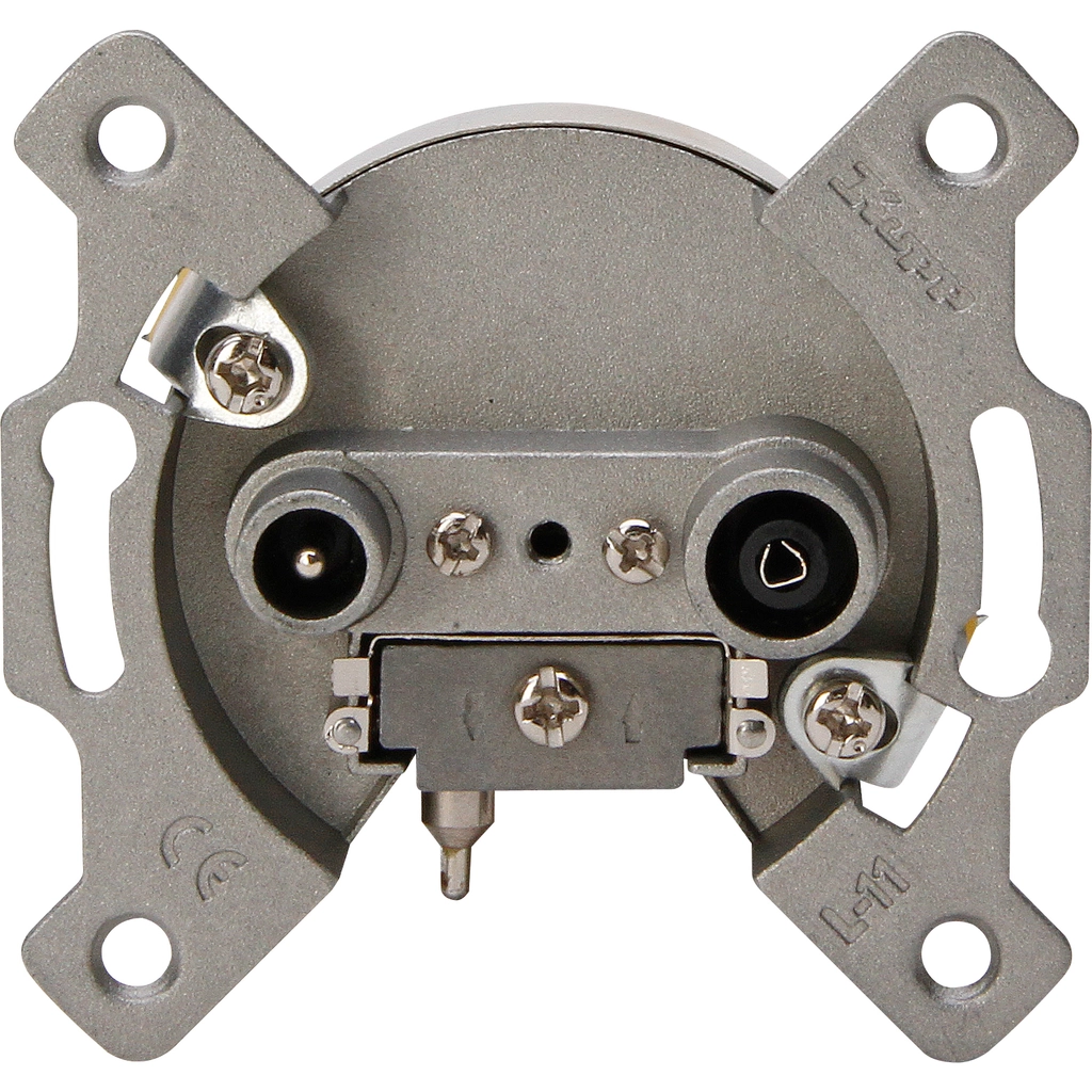 De montage gebeurt met klauw-/schroefbevestiging en het element is bedoeld voor toepassing als antenne-aansluitdoos, coax. Voor inbouw is een inbouwdoos met een minimale diepte van 30mm nodig.