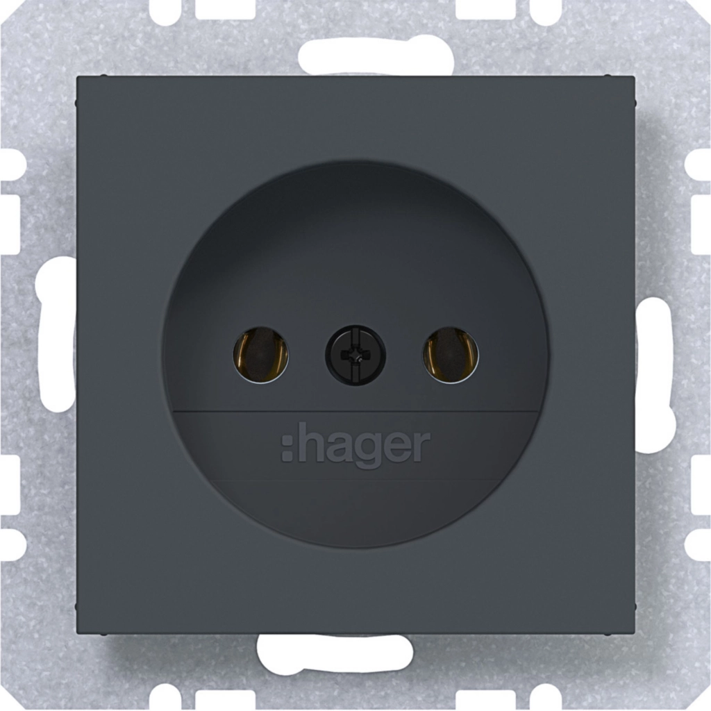 Hager Berker stopcontact zonder randaarde, A.1/A.8/C.1/C.8, antraciet mat. Excl. afdekraam.