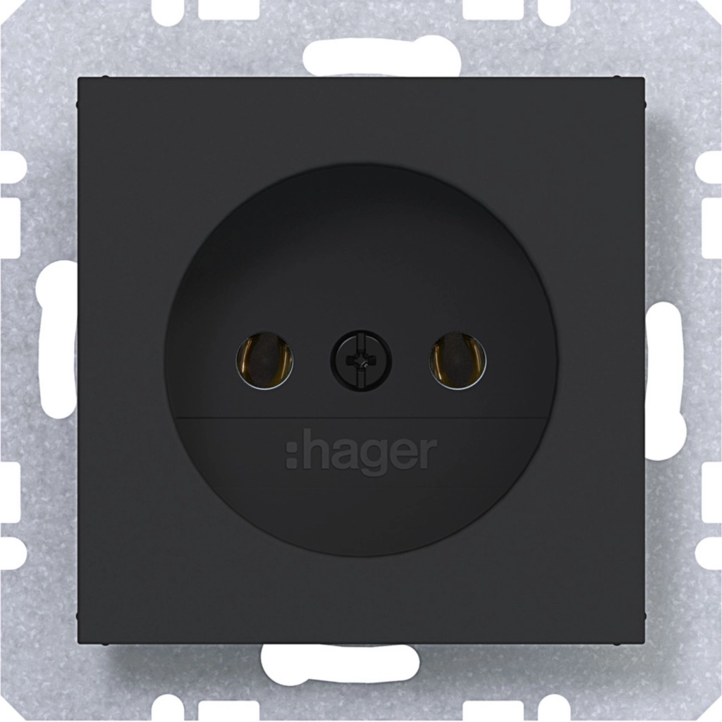 Hager Berker stopcontact zonder randaarde, A.1/A.8/C.1/C.8, nachtzwart mat. Excl. afdekraam.