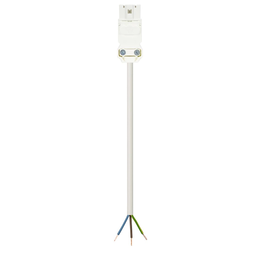 Deze aansluitkabel is geschikt voor het veilig aansluiten van apparatuur binnen gebouwinstallaties. Voorzien van een contrastekker (female) en een vrij kabeluiteinde, uitgevoerd in een 3-polige configuratie (L, N, PE) met een aderdoorsnede van 1,5 mm². Met een lengte van 0,5 meter en het flexibele H05Z1Z1-F-kabeltype is deze kabel geschikt voor 250V-toepassingen tot 16A. De witte mantel en witte codering zorgen voor een nette, onopvallende afwerking. De connector beschikt over vergrendeling voor een stevige aansluiting en het vrije uiteinde is duidelijk gemarkeerd met L, N, PE voor snelle en foutloze montage.